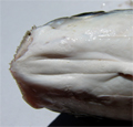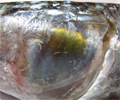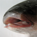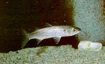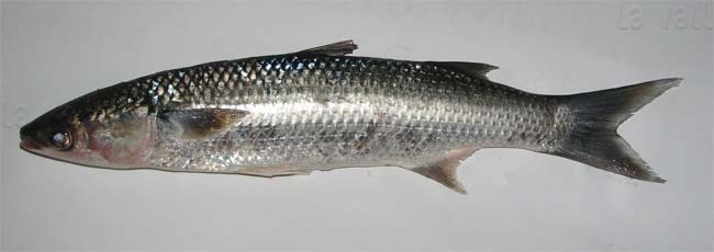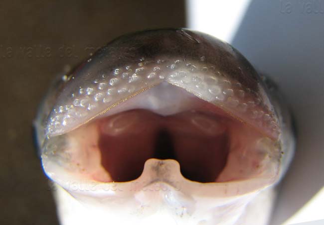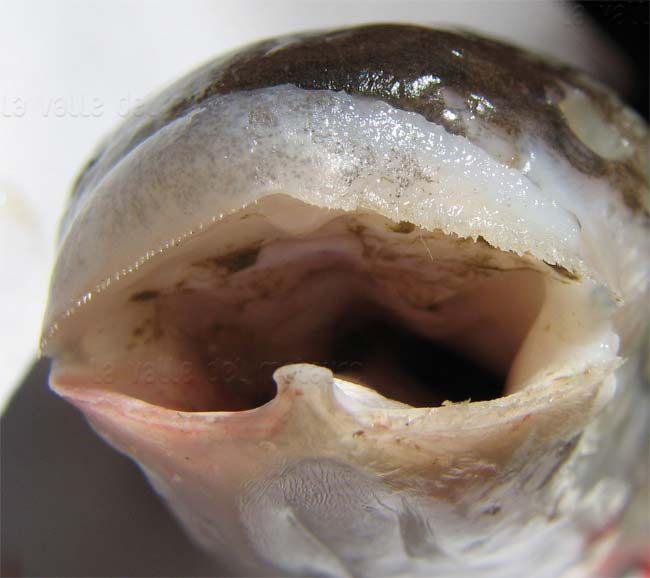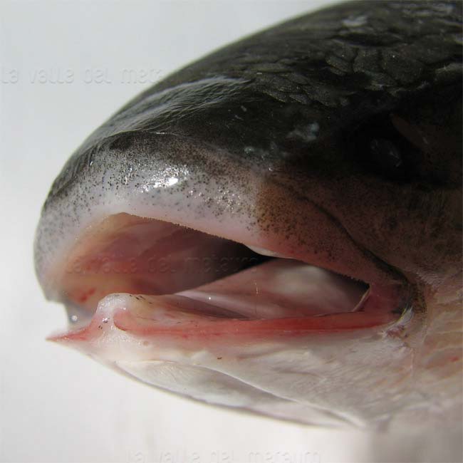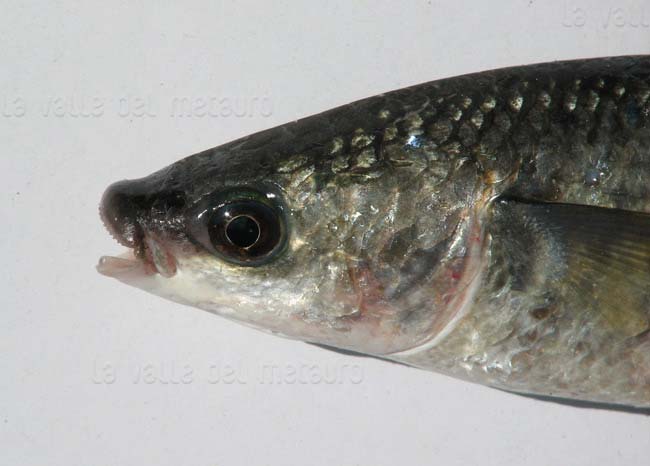 Cefalo bosega, 25 cm, particolare della bocca. Acque marine presso riva a Fano, maggio 2007