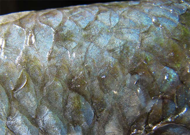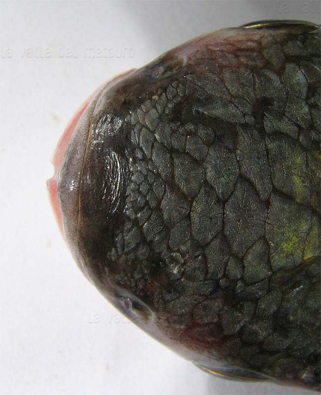 Cefalo calamita, squame della parte anteriore del dorso. Pescherie di Fano, giugno 2006