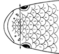 Cefalo calamita, parte superiore della testa con spazio tra le due narici coperto di squame (da: FISCHER et al. 1987)
