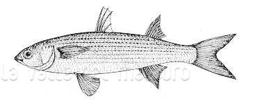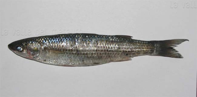 Cefalo verzelata di 25 cm, squame della parte anteriore del dorso. Pescherie di Fano, giugno 2006