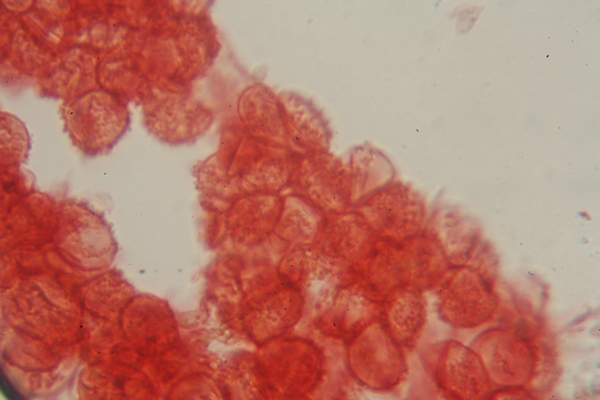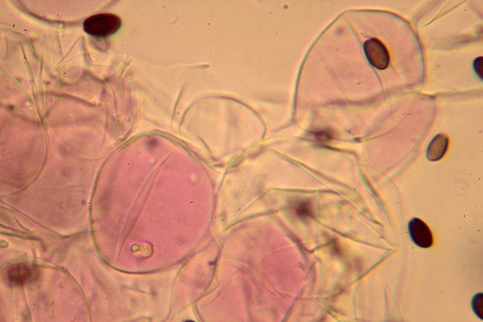 Cellule sferiche del velo di Coprinellus micaceus, Rio Secco (Fano e Cartoceto), aprile 2013