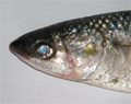 Cefalo verzelata, particolare della testa. Acque marine presso riva a Fano, maggio 2007