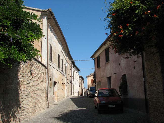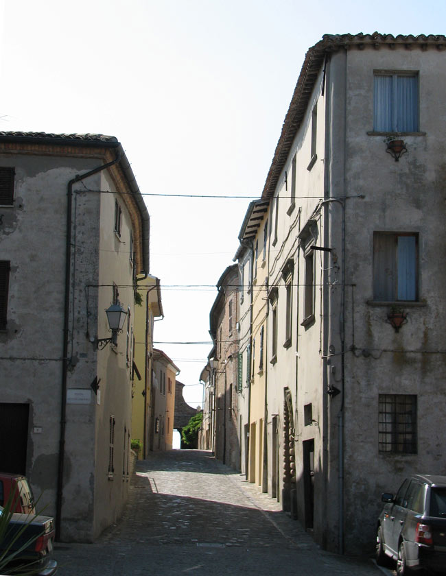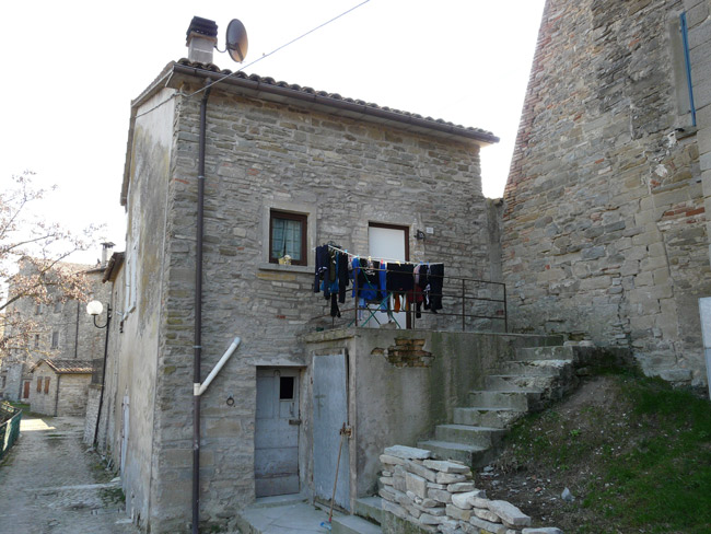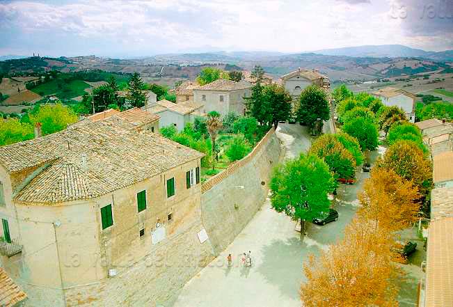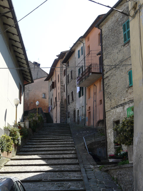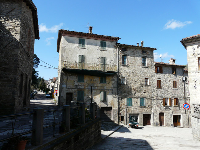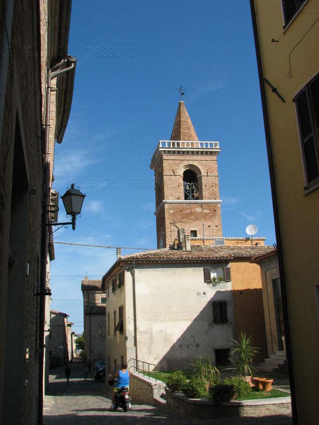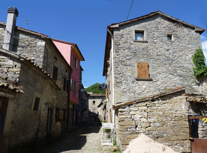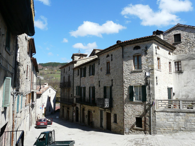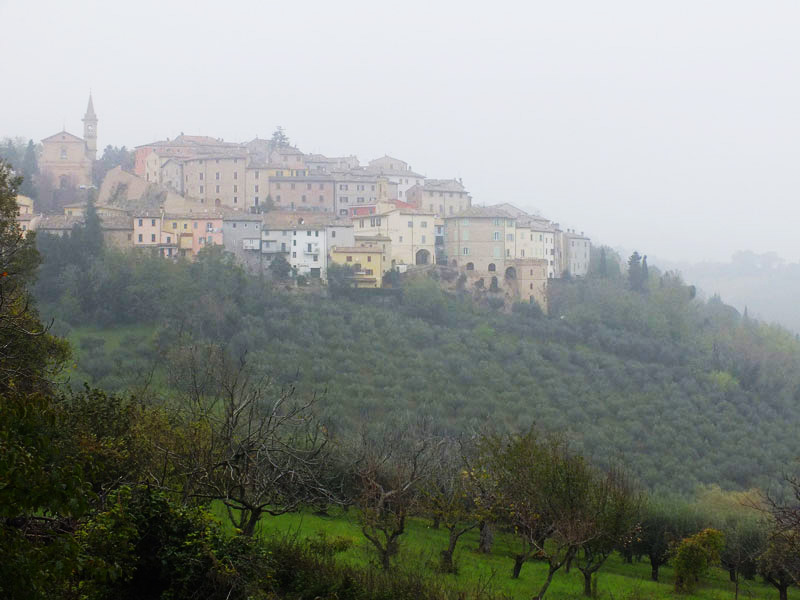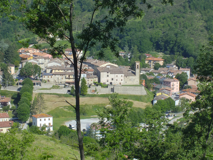 Centro storico di Apecchio con le mura e la Chiesa di S. Martino e S. Giovanni Battista, giugno 2017