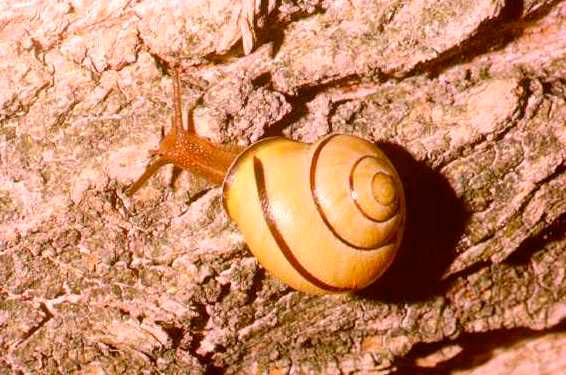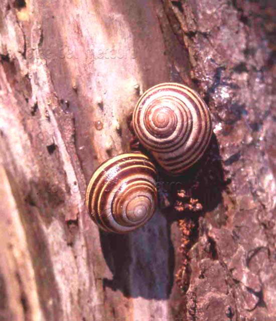 Cepaea nemoralis, bosco ripariale del Metauro a monte di Tavernelle (Serrungarina), marzo 2005