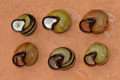 Cepaea nemoralis, lato inferiore. Bosco ripariale del Metauro a Sant'Ippolito, dicembre 2006
