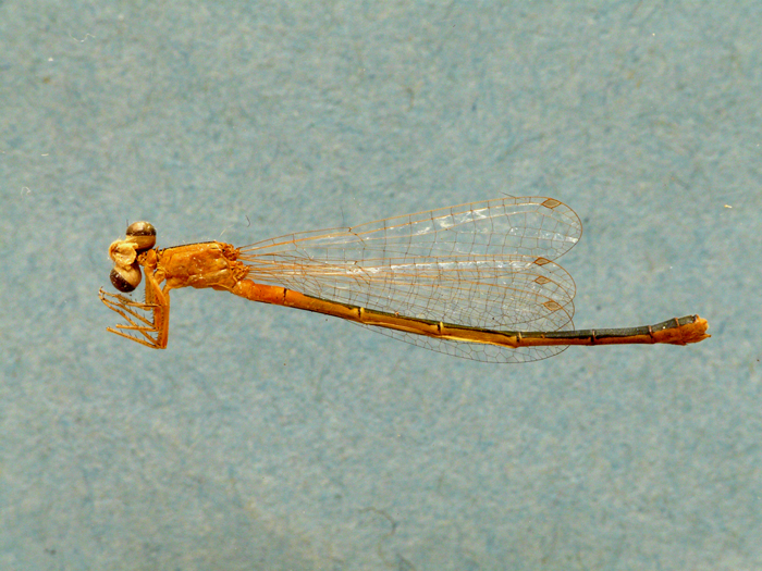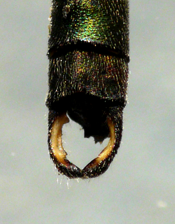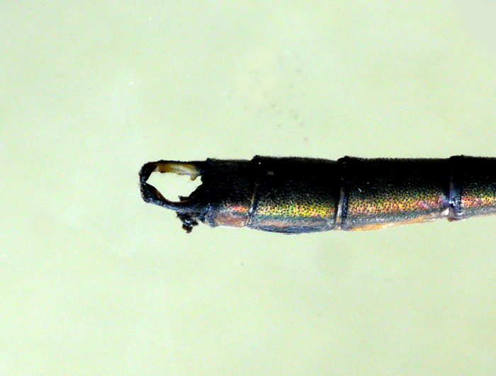 Cerci e addome di Chalcolestes viridis maschio (esempl. conservato), Stagno Urbani lungo il F. Metauro a Fano, settembre 2005