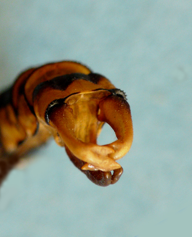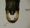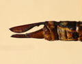 Cerci di maschio di Aeshna affinis (esempl. conservato) visti lateralmente, Stagno Urbani lungo il F. Metauro a Fano, luglio 1991