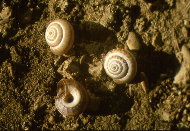 Cernuella cisalpina di 10 mm, rive erbose aride del F. Metauro a Fano, maggio 1995