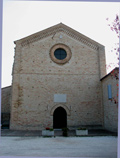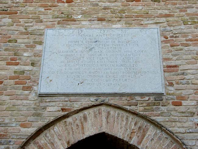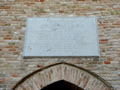 Chiesa di S. Francesco in Rovereto a Saltara, lapide sulla facciata, ottobre 2007