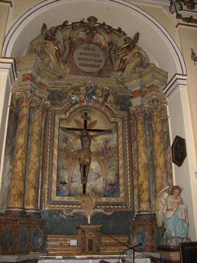 Chiesa di S. Maria Assunta a Sant'Andrea di Suasa (Mondavio), altare con Crocifisso, dicembre 2007