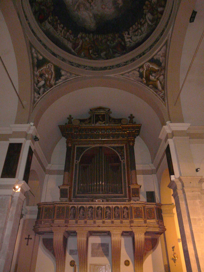 Chiesa di S. Paterniano a Fano, Cantoria e organo (da opuscolo: Fano, Santuario di San Paterniano, Fondaz. Cassa Risp. Fano)
