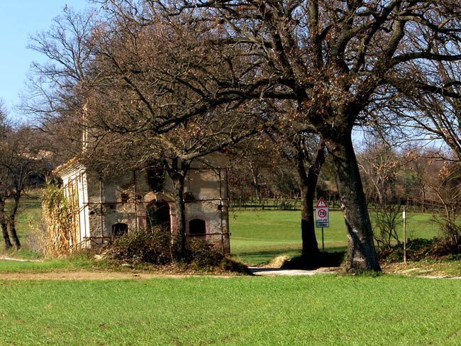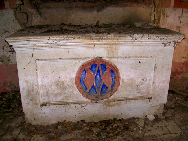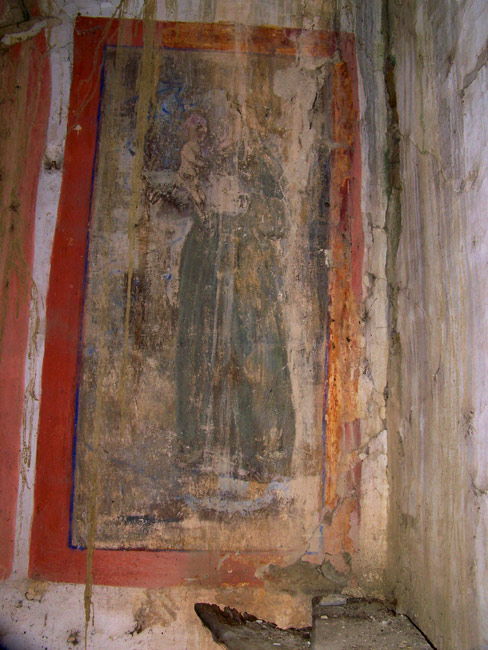 Chiesa Parrocchiale di Isola di Fano (Fossombrone), particolare di un muro laterale, dicembre 2007