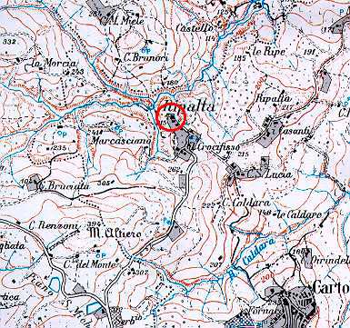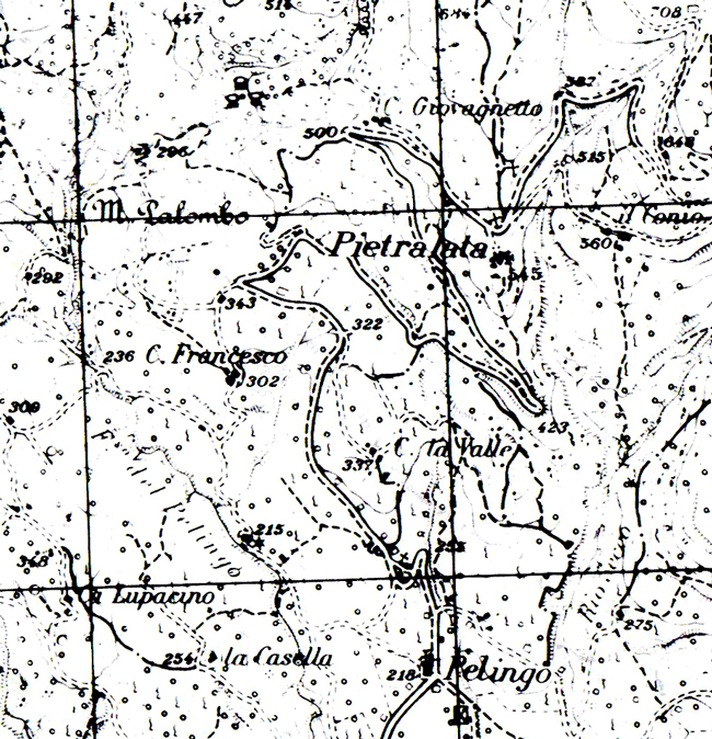 Chiesa e castello di Pietralata ad Acqualagna. IGM 1:25.000 116 – IV N.E. (autorizz. IGM n. 4877 del 2-11-1998)