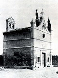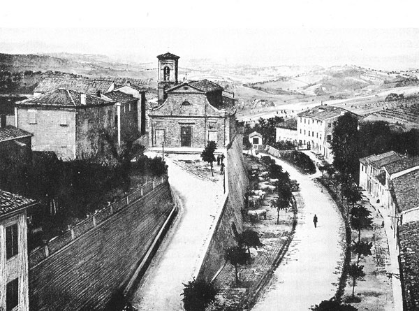 Chiesa Parrocchiale di San Giorgio di Pesaro prima del 1932, con ancora il campanile (da BELOGI 1994)
