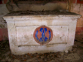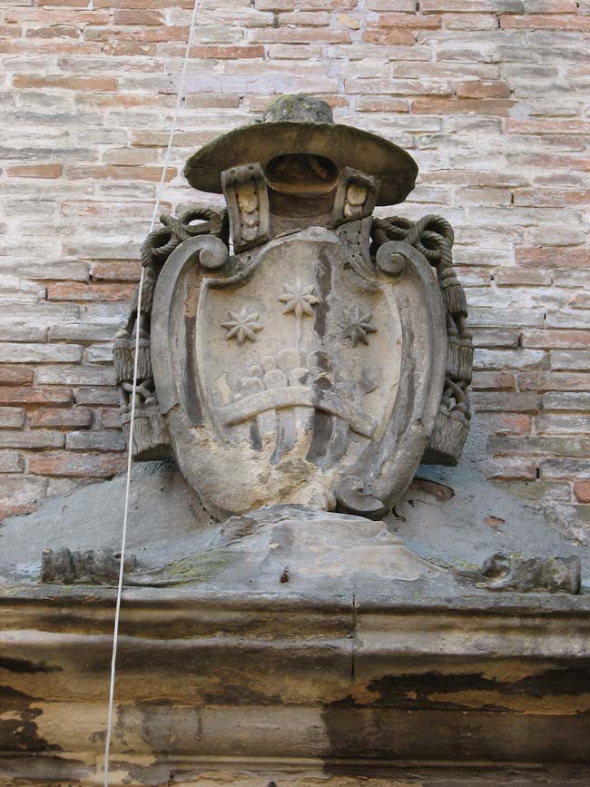 Chiesa Parrocchiale di Isola di Fano (Fossombrone), stemma sopra il portale, dicembre 2007