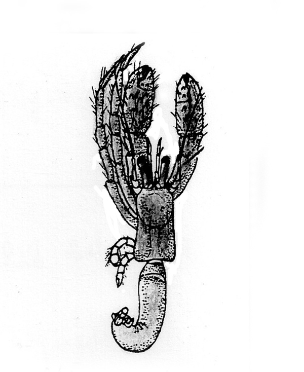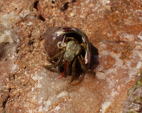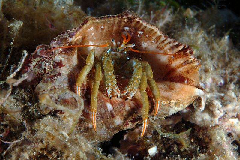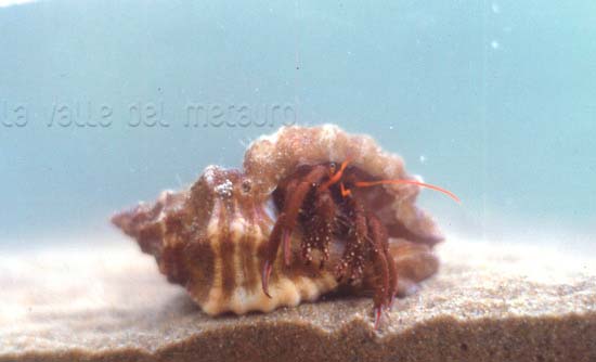 Clibanarius erythropus entro il nicchio di Ocenebra erinaceus, scogliere frangiflutti di Fano, 2004