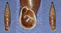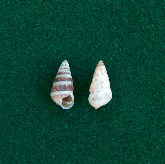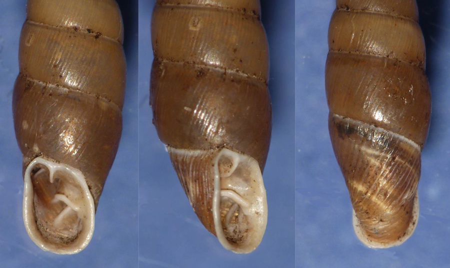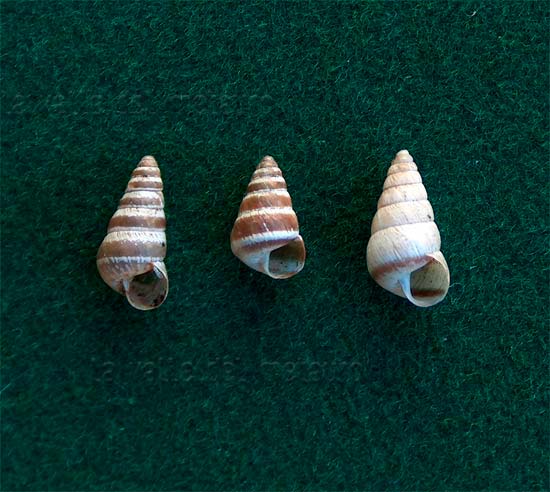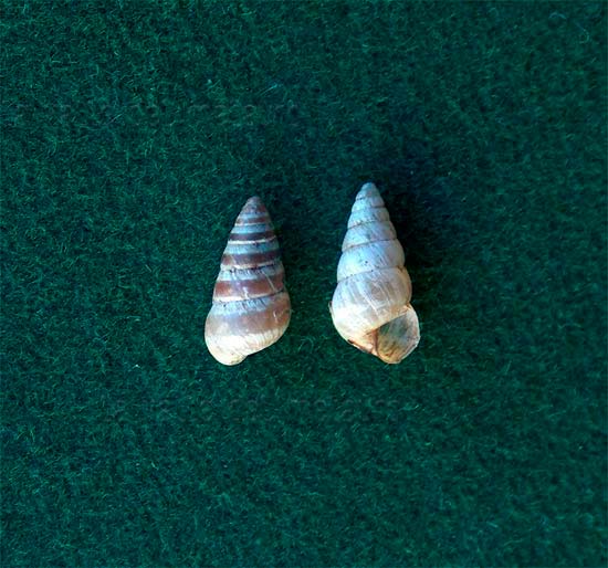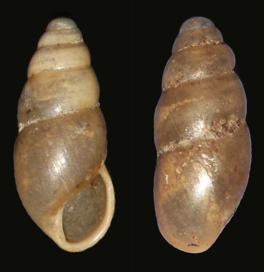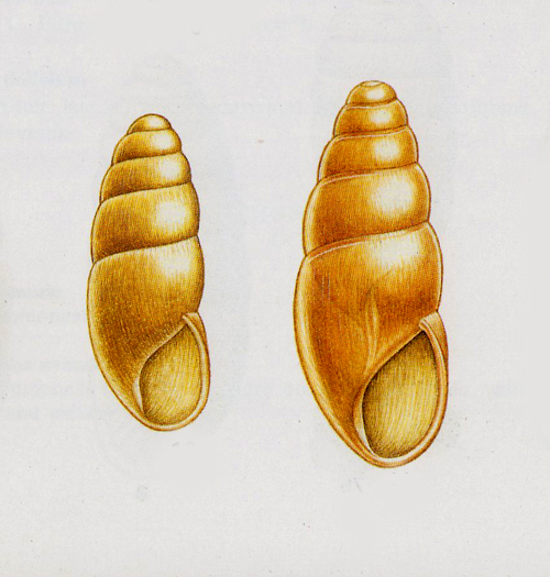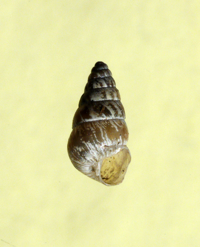 Cochlicopa (cfr.) lubrica di 5 mm, bosco ripariale del Metauro alla Palazzina (Sant'Ippolito), dicembre 2006