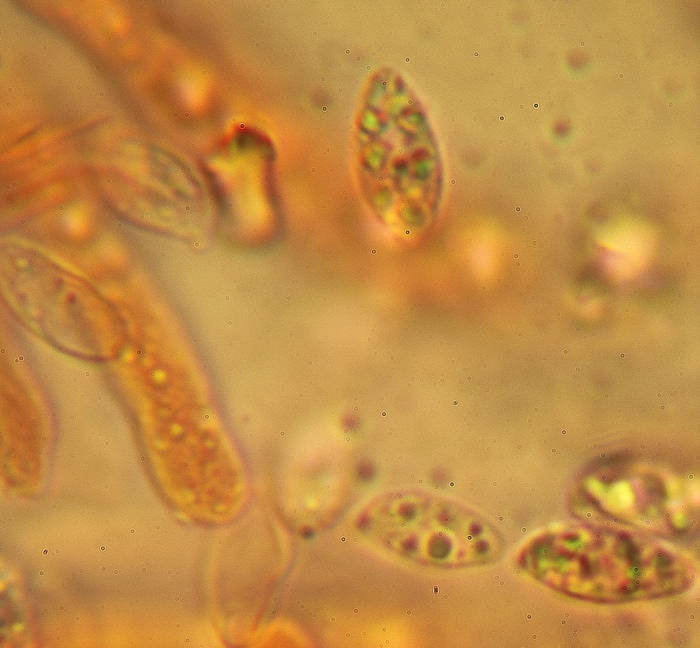 Clitocybe inornata, collina del Prelato a Fano, ottobre 2012. Spore con piccole guttule