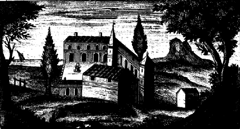 Convento della Santissima Trinità di Montebello. Da: Acta Sanctorum Iunii, III, Antuerpiae, Apud viduam Henrici Thieullier, 1701, p. 534