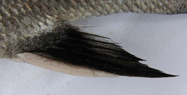 Corvina di 24 cm, particolare della pinna anale. Pescherie di Fano, agosto 2006