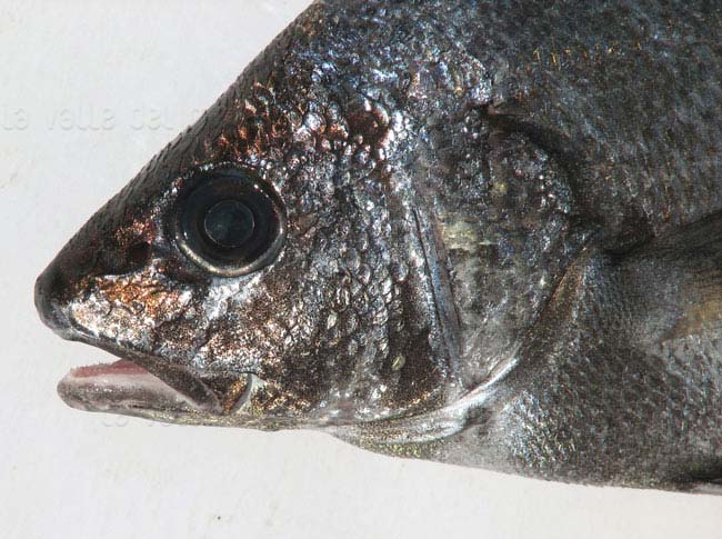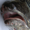 Corvina di 24 cm, particolare della mascella inferiore. Pescherie di Fano, agosto 2006