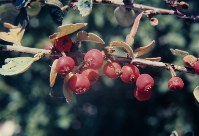 Cotoneaster nebrodensis in frutto, Gola dell’Infernaccio (M. Nerone) agosto 1984