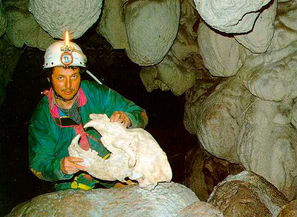 Cranio di Rhinolophus ferrumequinum, Grotta di Nerone sul M. Nerone, gennaio 1989
