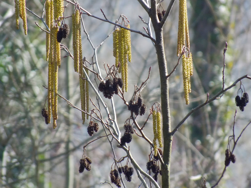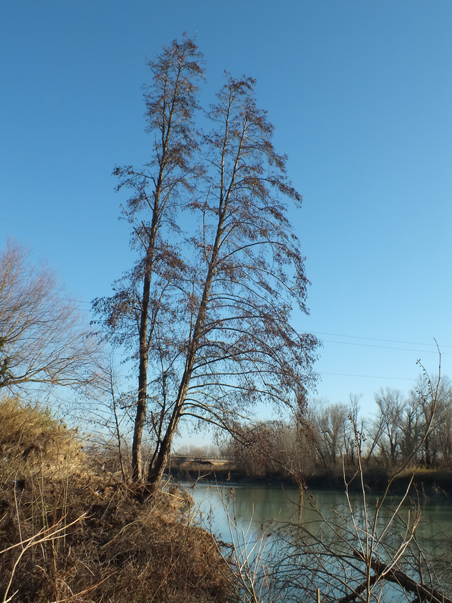 Alnus glutinosa, bosco ripariale in riva sinistra del F. Metauro a 6,5 km dalla foce, febbraio 2019