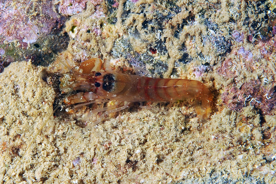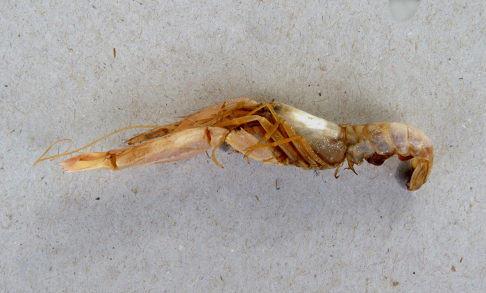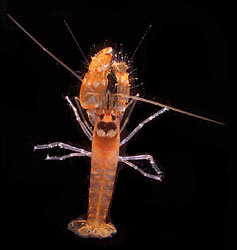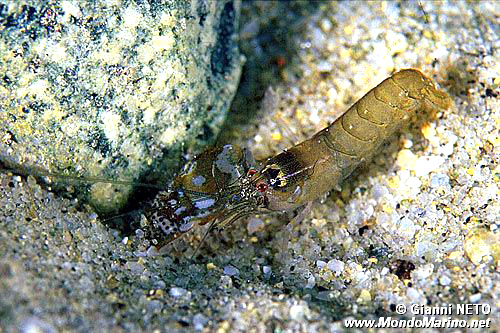 Alpheus glaber di 38 mm (esempl. conservato), pescato nell'ottobre 2003 12 km al largo di Fano