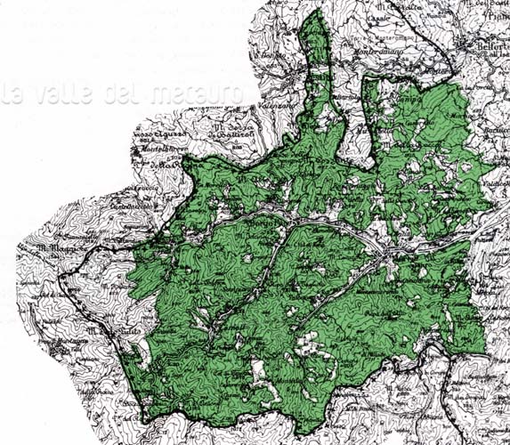 Alta Valle del Metauro, emergenza botanico-vegetazionale BB, carta 1:100.000 (da BALLELLI e PEDROTTI 1996)