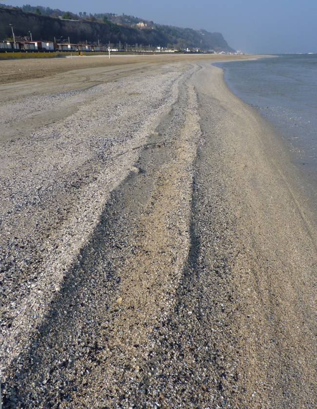 Creste di conchiglie spiaggiate alla foce di Fosso Sejore (Pesaro), novembre 2011
