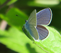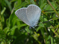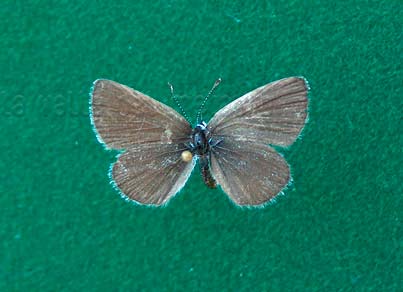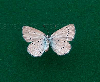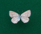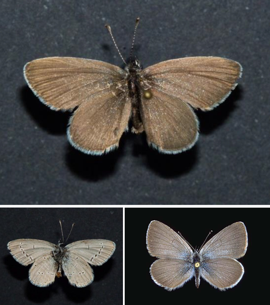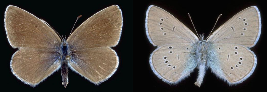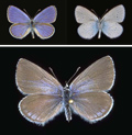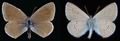 Cupido minimus maschio (ala anteriore 10 mm), M. Nerone, luglio 1992 (foto L. Poggiani); Cupido minimus maschio (ala anteriore 10 mm), parte inferiore, M. Nerone, luglio 1992 (foto L. Poggiani); a destra: maschio (foto R. Villa, da: VILLA et al., 2001)