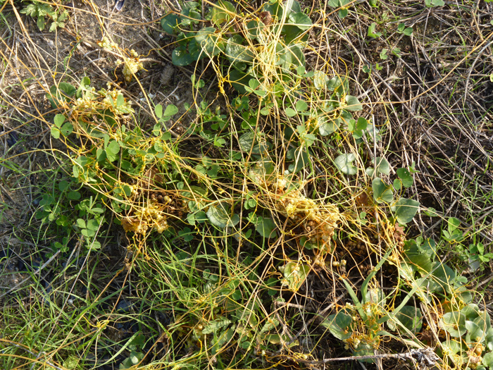 Cuscuta epithymum su Medicago sativa (Erbario L. Poggiani), Fano, agosto 1986