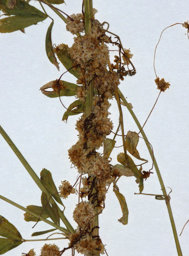 Cuscuta campestris su Xanthium orientale (Erbario L. Poggiani), F. Metauro in Comune di Fano, agosto 1986