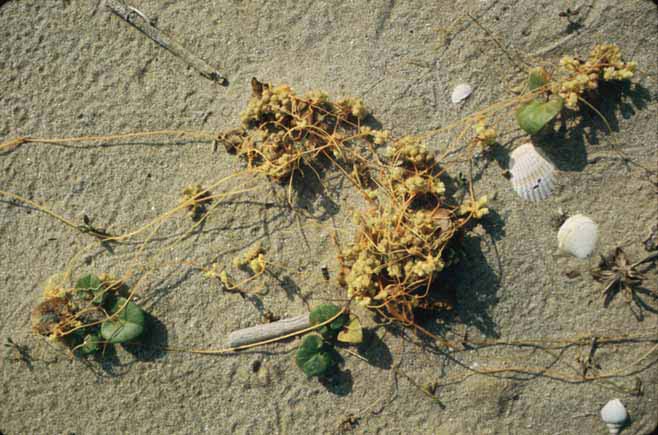 Cuscuta cesattiana su Calystegia soldanella, spiaggia di Baia del Re (Fano), ottobre 1983