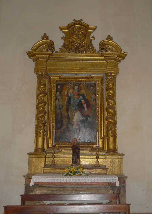 Altare laterale con S. Michele Arcangelo, Chiesa di S. Anastasia a Chiaserna (Cantiano), ottobre 2009