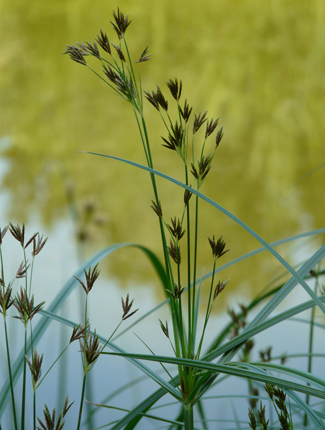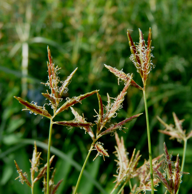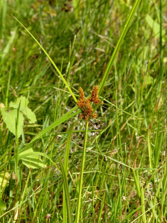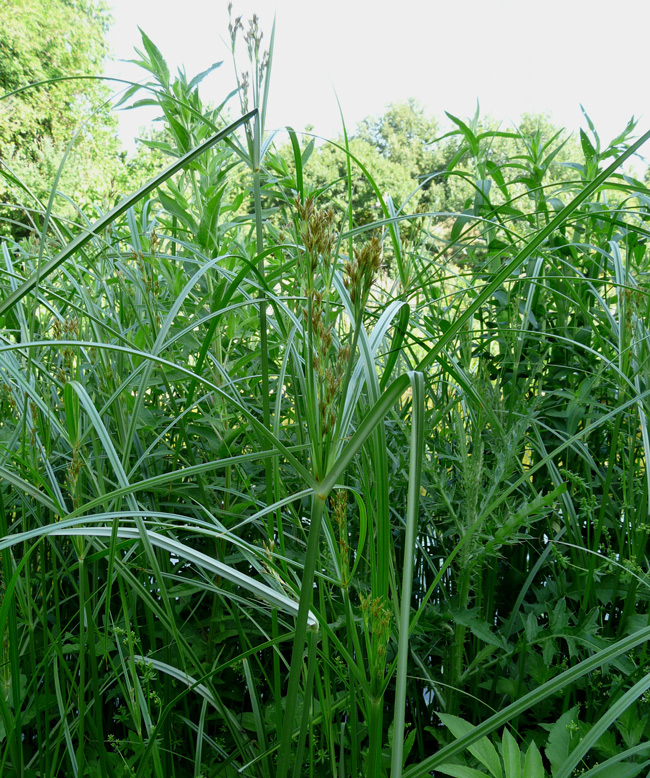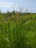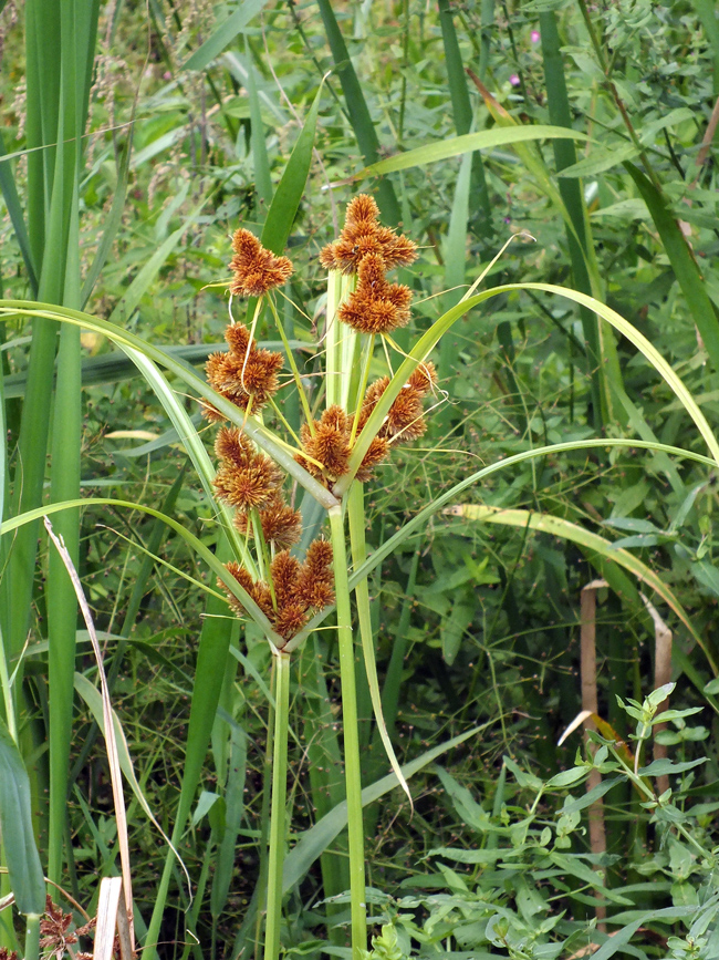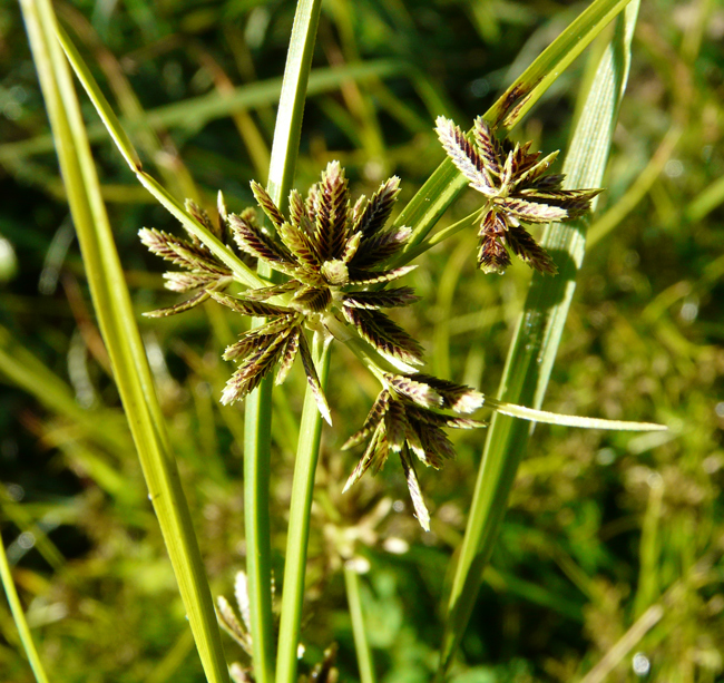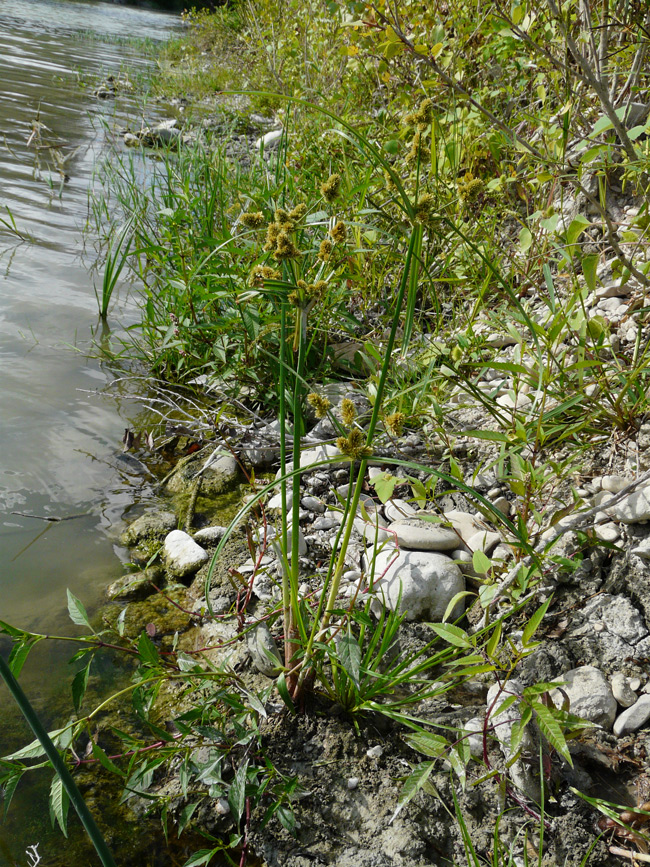 Cyperus rotundus, scarpata sabbiosa asciutta al margine della spiaggia di Torrette (Fano), 4 ottobre 2020; a dx: acheni fusiformi, trigoni (Erbario L. Poggiani)