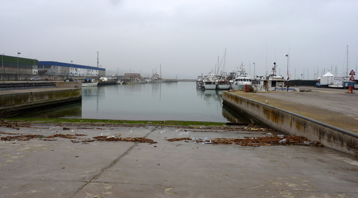 Darsena cantieristica del Porto di Fano, gennaio 2012. In primo piano lo scalo di alaggio