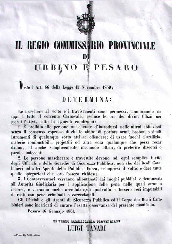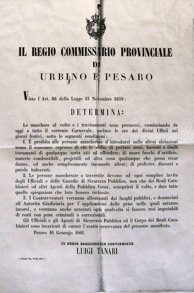 S.A.S.Fa., A.S.C., Bandi, Editti e Notificazioni, 1861
