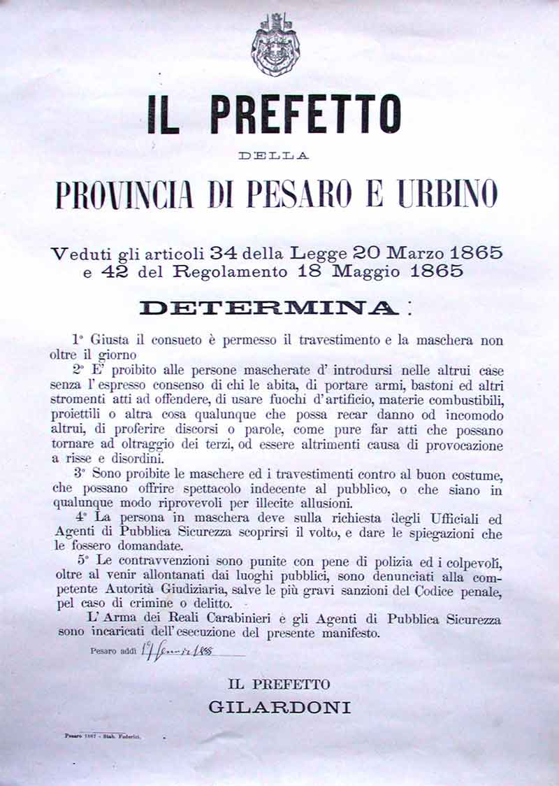 Determinazione del Prefetto del 17 Gennaio 1888