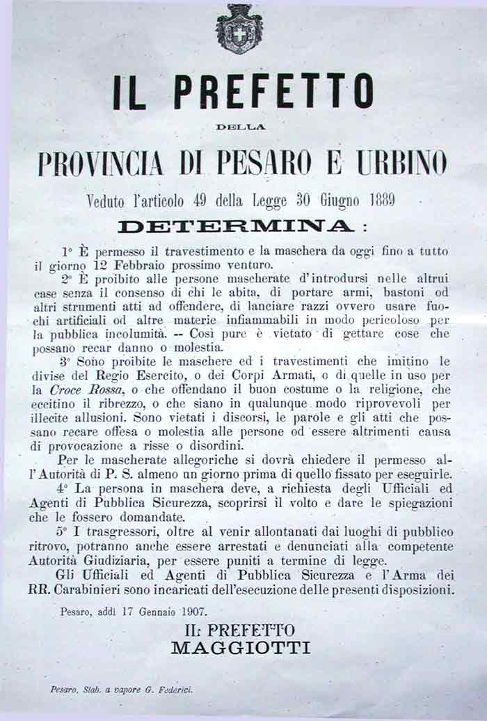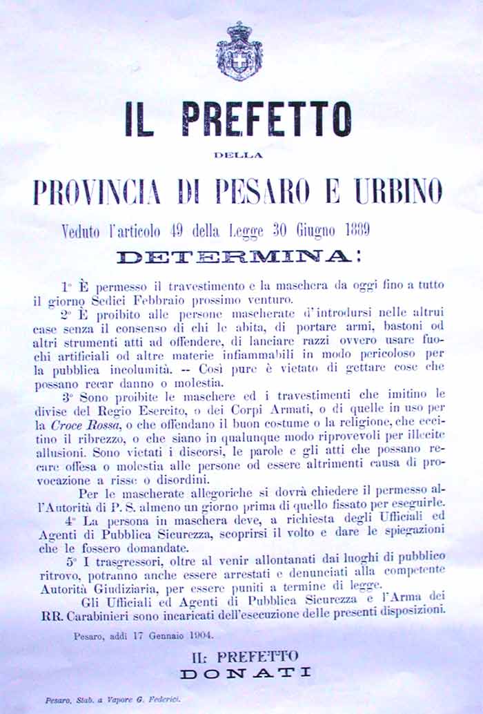 Determinazione del Prefetto del 17 Gennaio 1904