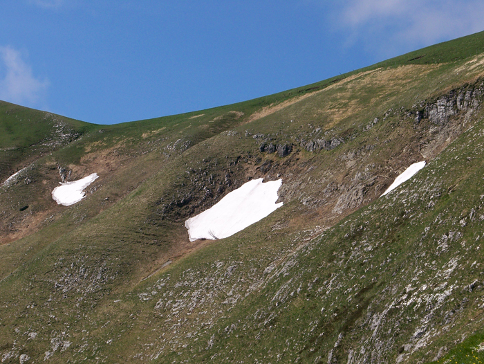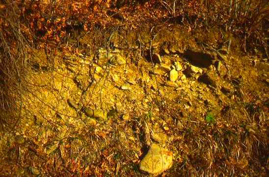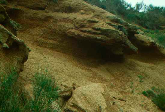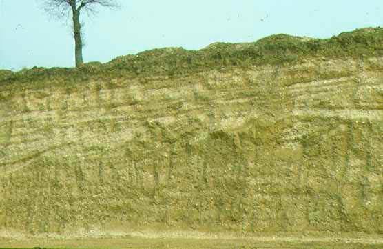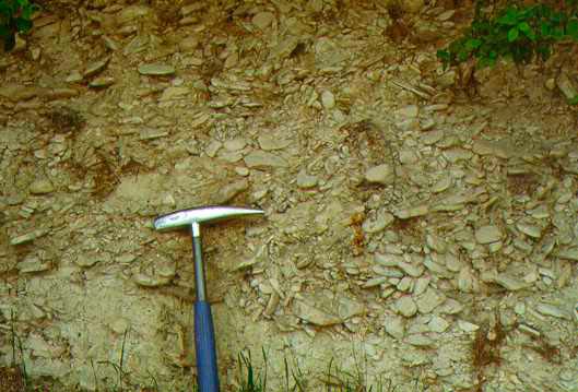 Detriti di falda nella cava di Gorgo a Cerbara, giugno 2012. Si tratta di detriti stratificati parzialmente cementati prodotti da intensa gelifrazione durante le fasi più fredde del Pleistocene superiore