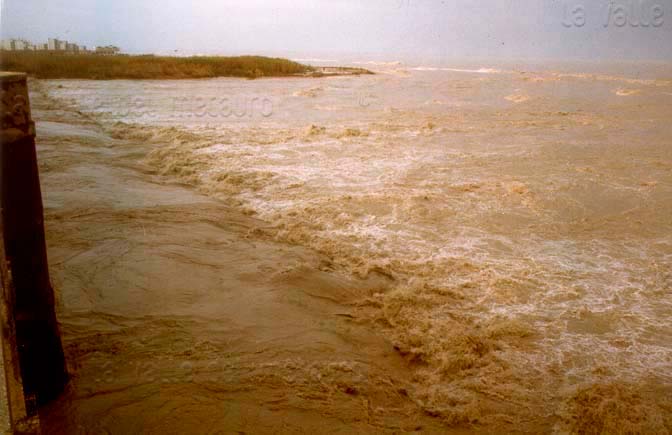 Dicembre 1982, Foce del Fiume Metauro. Forte piena vista dal ponte della ferrovia
