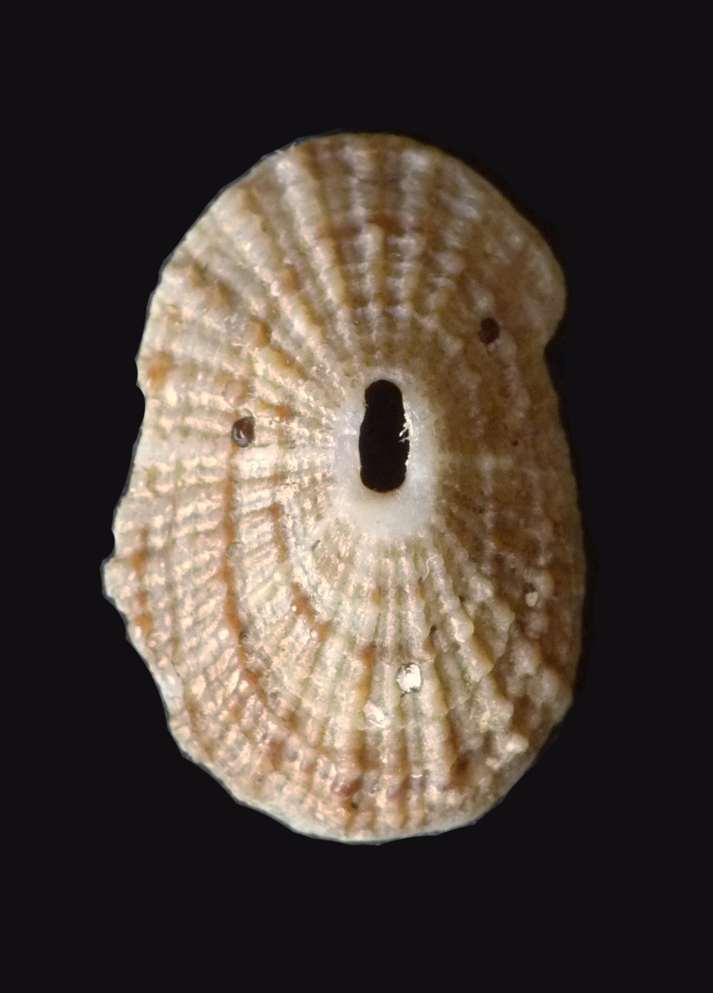 Diodora gibberula di 20 mm, spiaggiata tra Fosso Sejore e Pesaro, gennaio 2002