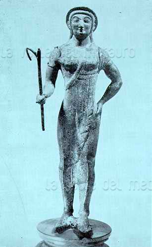 Dio Vertunno (o offerente togato), bronzetto dalla stipe votiva di Isola di Fano conservato nel Museo Archeologico Nazionale di Firenze (da PIERUCCI 1977)
