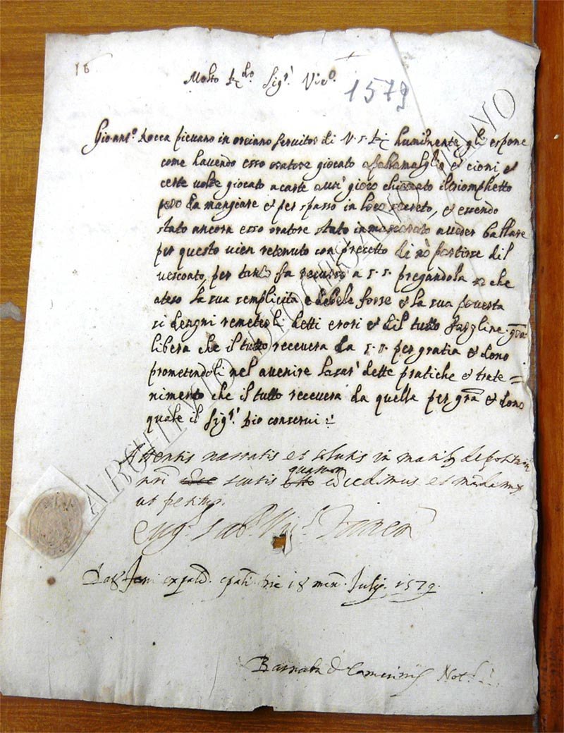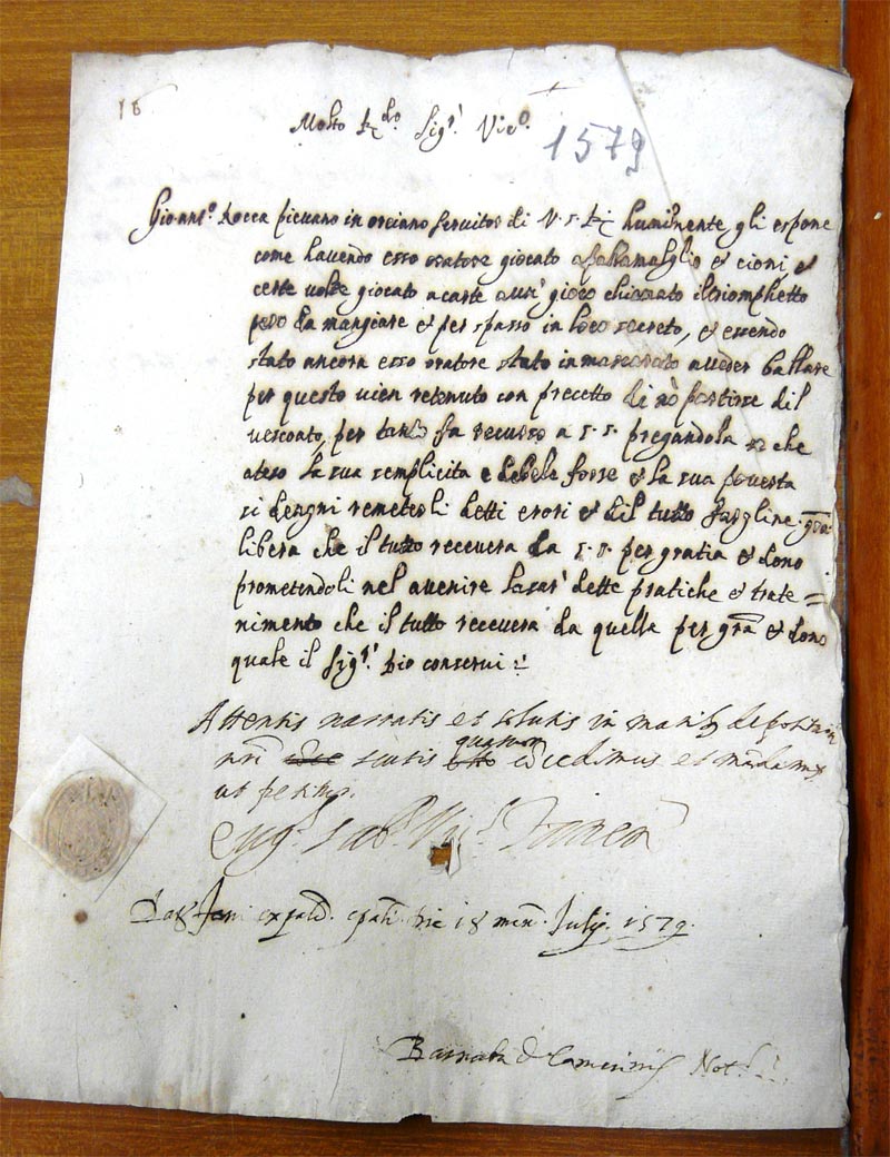 Documento del 1574