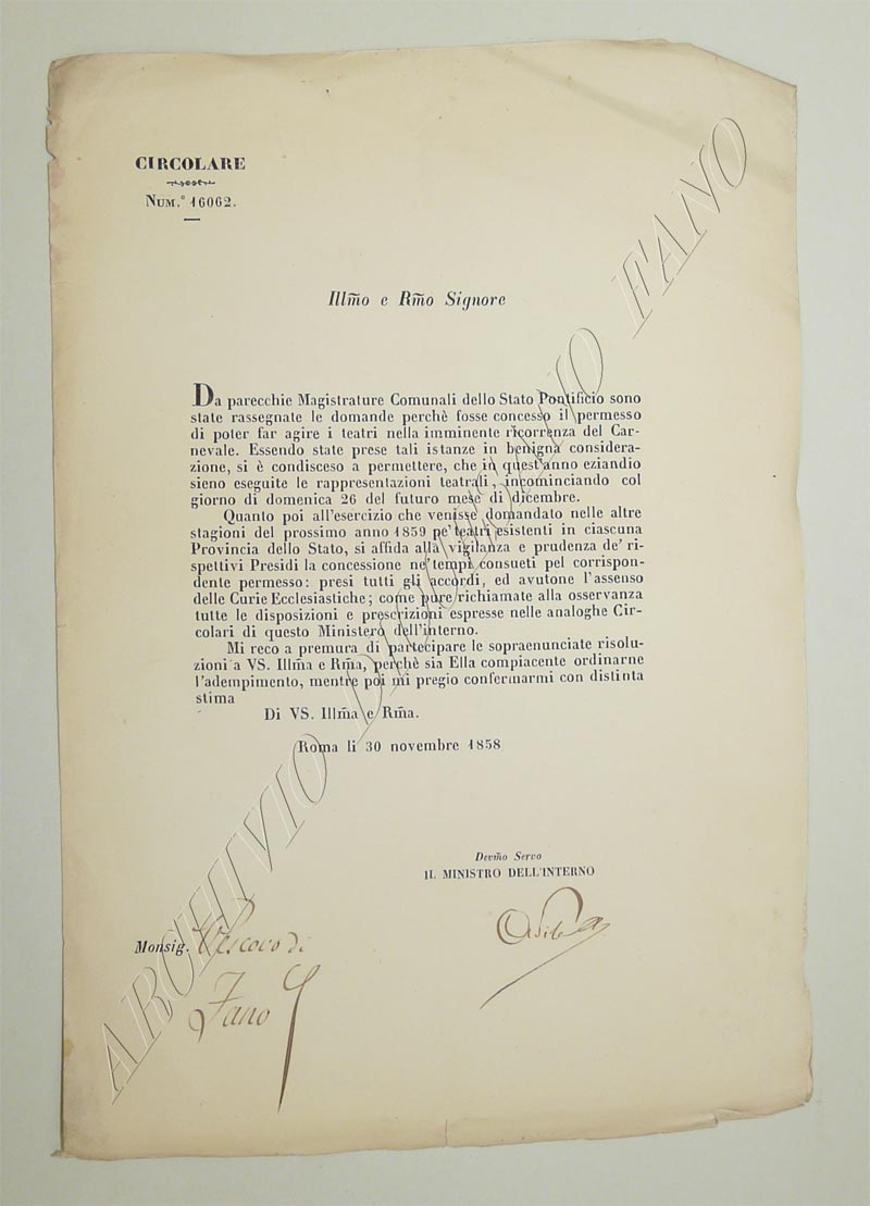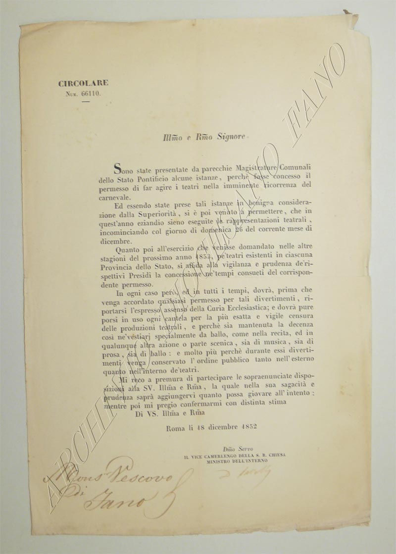 Autorizzazione Archivio di Stato di Pesaro n. 154 del 23/2/2006