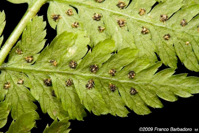 Dryopteris filix-mas, sori nella pagina inferiore della fronda (foto Giorgio Venturini, www.giorgioventurini.net)