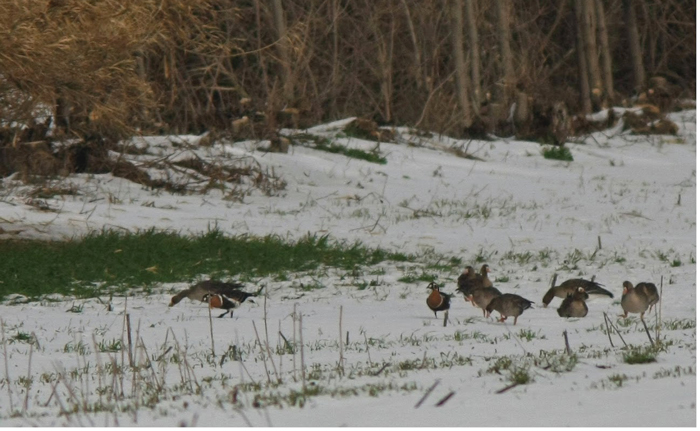 Due oche collorosso assieme ad Oche lombardelle, litorale a S.E. della foce del Cesano (Senigallia), 15 febbraio 2012 (da: www.roberto-lavalledelcesano.blogspot.com)