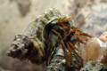 Due Clibanarius erythropus, costa alta del San Bartolo da Pesaro a Gabicce, marzo 2008, in acquario; utilizzano nicchi di Ocenebra erinaceus e di Cerithium sp. (foto G. Busignani)